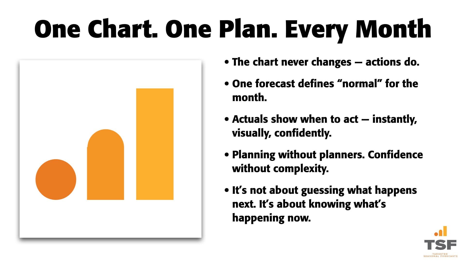 Built on seven years of original research, TSF replaces prediction with proof—defining what’s normal for every SKU, every month. Merchants and agencies plan inside the band, not against a guess.